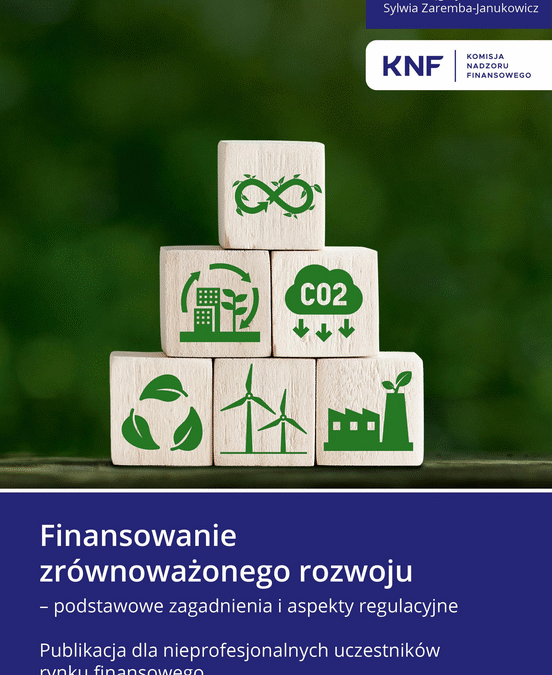 Urząd Komisji Nadzoru Finansowego, w ramach projektu Centrum Edukacji dla Uczestników Rynku – CEDUR, wydał elektroniczną publikację edukacyjną „Finansowanie zrównoważonego rozwoju – podstawowe zagadnienia i aspekty regulacyjne. Publikacja dla nieprofesjonalnych uczestników rynku finansowego”.